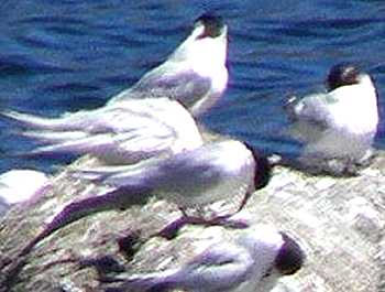小さく白い点が見えたのですが、これは海鳥の群れです。