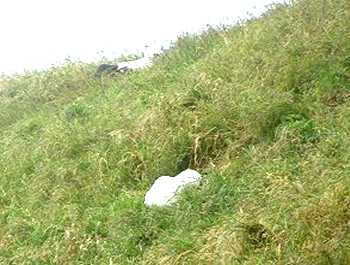 牧場の柵を乗り越え、牧場の中を20〜30分歩くと、牧場の中に突然右のような穴が現れました。