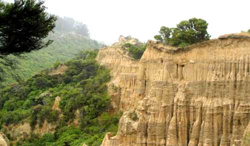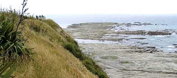 これはカセドラル・クリフの断崖で、下の海岸沿いの町がポート・ロビンソンです。 |
