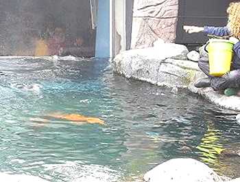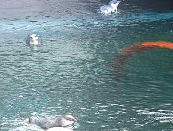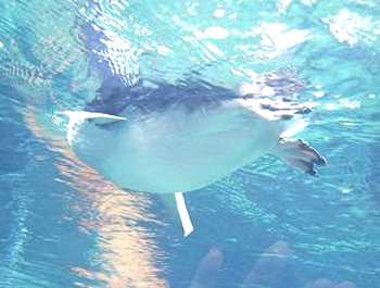| ペンギンが泳いでいるのを、水中からも見られるようになっています。 |